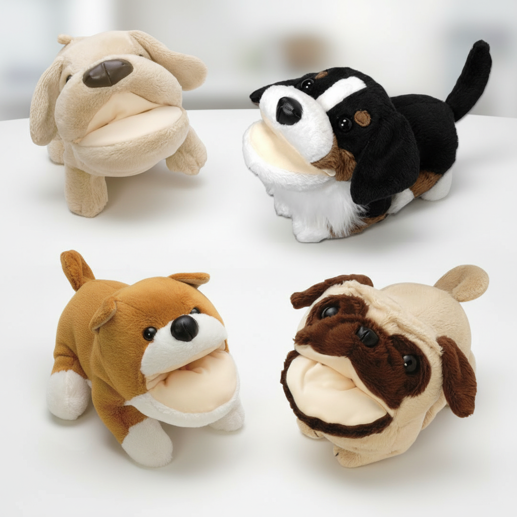 口の内側に超極細繊維を使用した眼鏡にやさしい、ぬぐるみタイプの可愛いアニマルメガネスタンド犬シリーズ