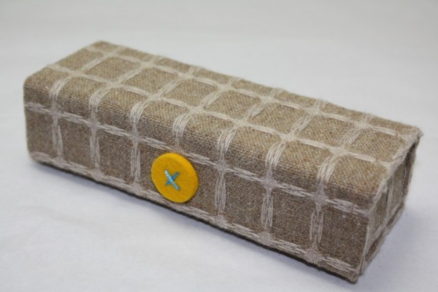 ほっこりかわいい雰囲気。おへそボタンがアクセントのメガネケース(眼鏡ケース) です。