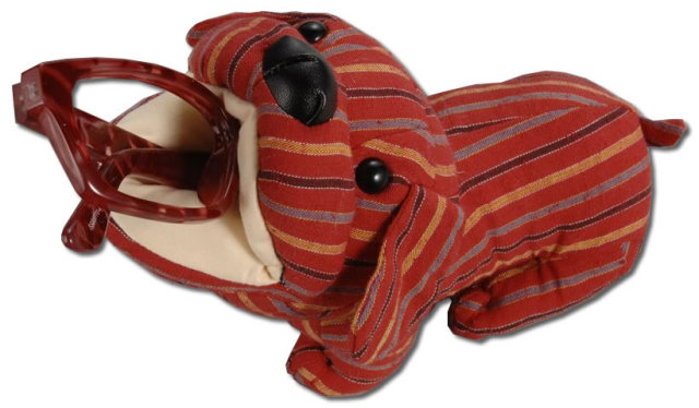 口の内側に超極細繊維を使用した眼鏡にやさしいアニマルメガネスタンド(眼鏡スタンド)。ぬくもり溢れる風合いの遠州綿紬(遠州織物)。
