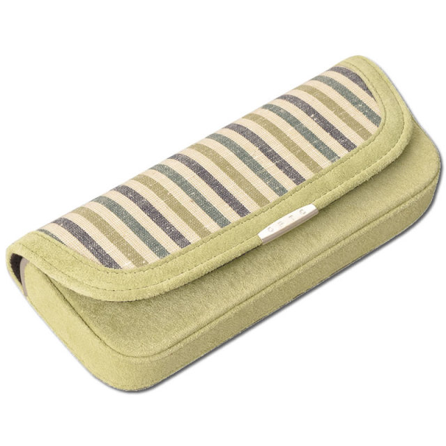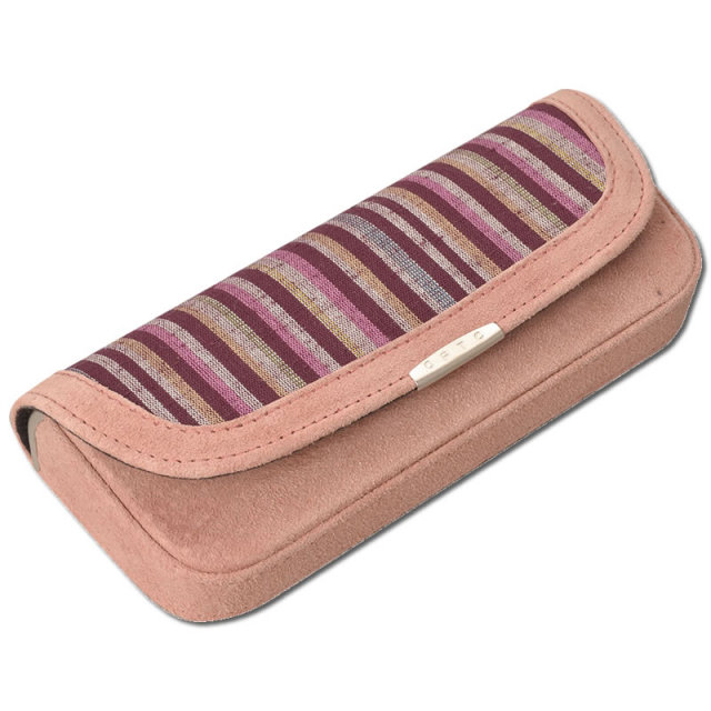 本革と遠州綿紬(遠州織物)のシンプルなメガネケース(眼鏡ケース) です。